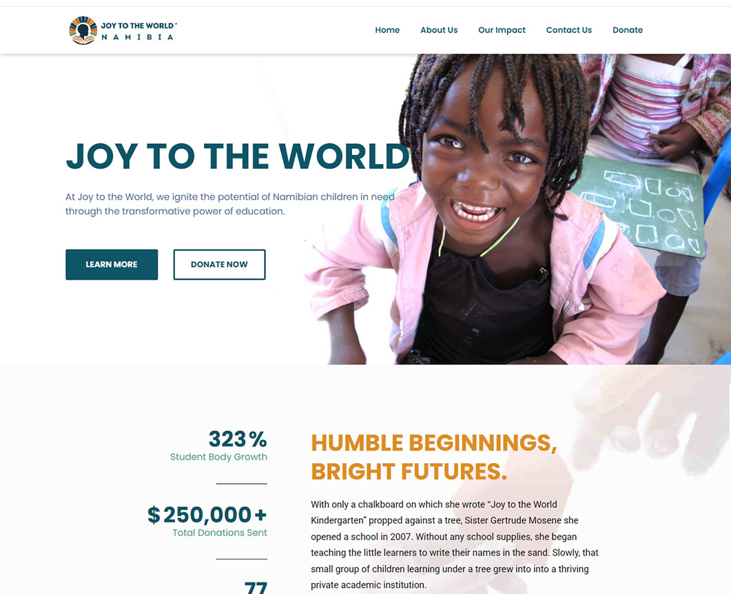 A content-rich website utilizing a flexible, easy-to-update structure for a nonprofit K-7 school in Namibia.