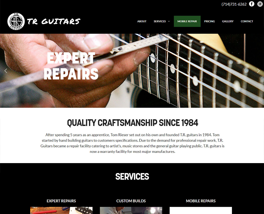 An on-brand, user-friendly website with a clean, responsive build for a local mobile guitar repair specialist.